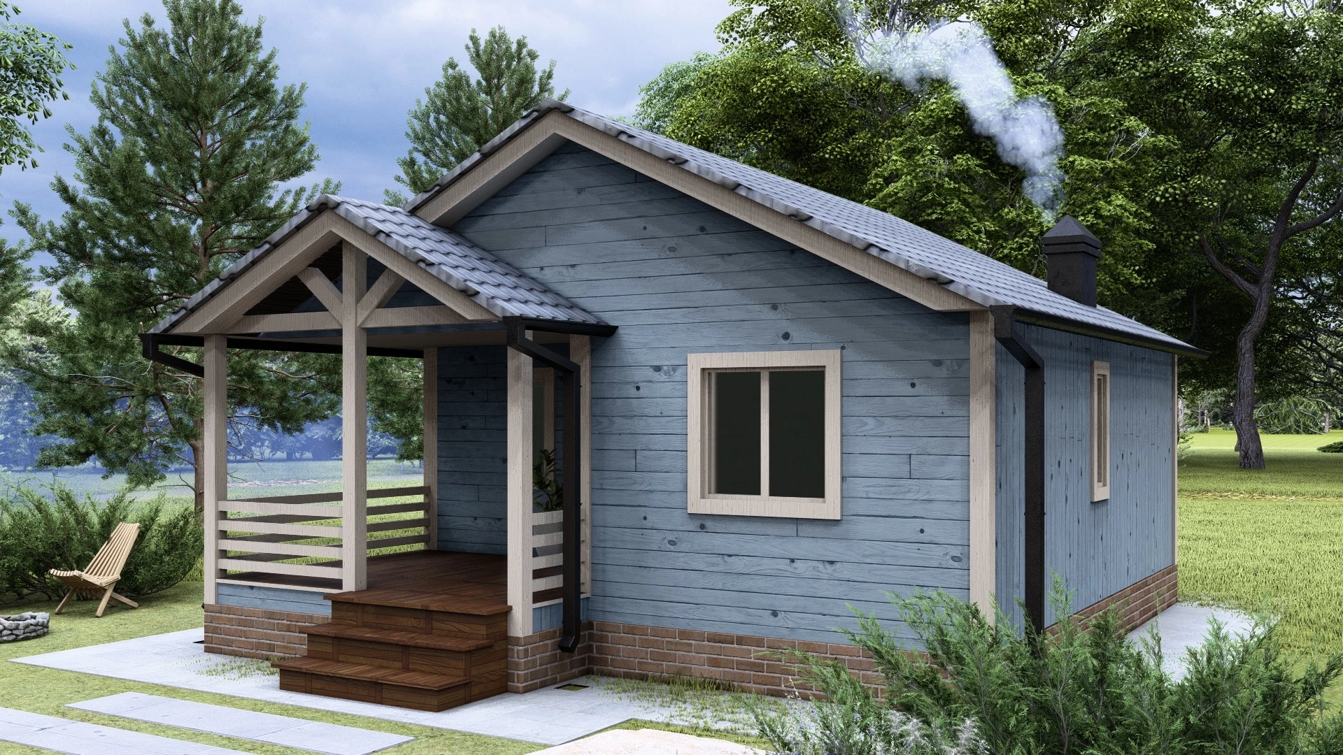 - Отделка наружная и внутренняяПо желанию клиента (имитация бруса 135мм; фиброцементный сайдинг и тд); потолок - вагонка 12мм